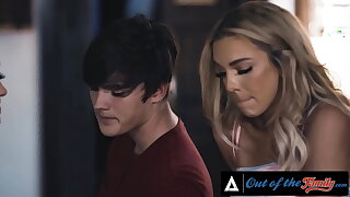 Step Mom and Step Sister Share Bed with Step Son in Wild Hotel Fuck
